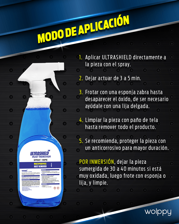 Elimina el óxido de la pieza, mas no restaura la pintura de la misma.